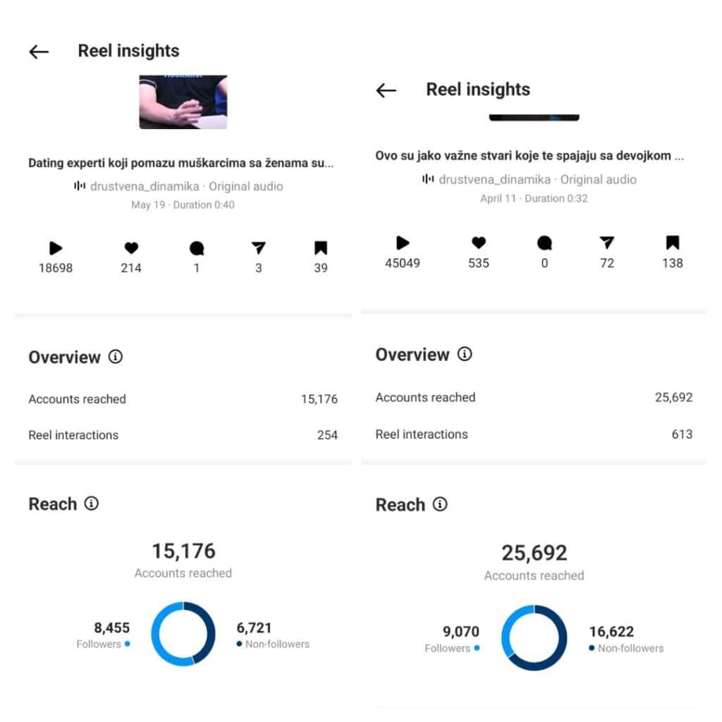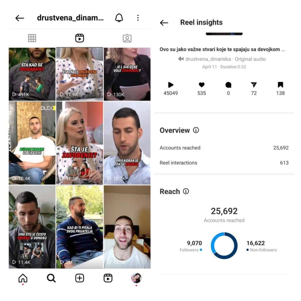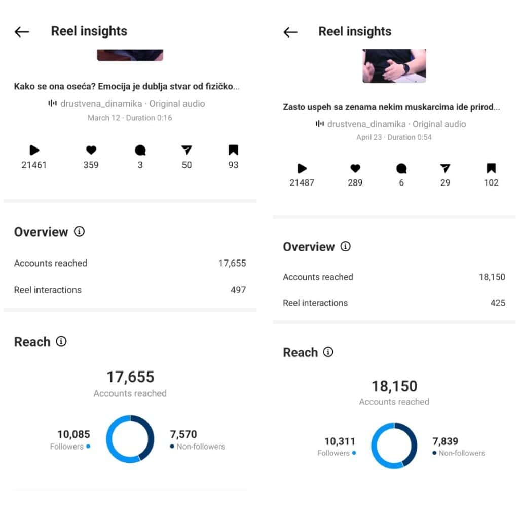 Statistike i rezultati reels videa brenda Društvena Dinamika USZ
